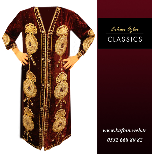 Bindallı kınalık koton kadife kıyafetimiz kadife üzerine tel sarma sanatı uygulanmıştır. Bu Bindallı kesinlikle ve kesinlikle kaftanların padişahıdır. Çünkü 6 – 7 aylık el işçiliği uygulandıktan sonra ortaya çıkmıştır. Piyasada bulunan kaftanlarla lütfen karıştırmayın uzun zaman sonucunda ortaya çıkan kaftan çeşitlerimizden bir tanesidir. Güç ve itibar simgesi olan bu tarz elbiselerimiz her kesimin giyebileceği bir kaftan asla değildir. İç mimarlar bu kaftanları çerçeveleyerek Yalı ve Villaların duvarlarına çok ciddi paralara sattığını unutmayınız. Kadife kumaş üzerine tel sarma işçiliği ile süsleyerek üst sınıfa taşıdık. Kızlar birbirlerini kıskandıracak ve heyecanlandıracak kaftan çeşitlerimizdendir.